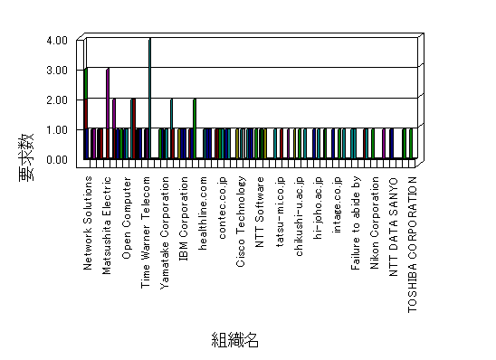 組織ユーザーにインターネット接続を提供する、商用または非営利団体、学術・行政機関などの、インターネット ドメイン で識別される団体や組織です。Microsoft Site Server Analysis は同じ組織に登録されたすべてのドメインを 1 つの組織としてグループ化します。ドメインがデータベースで使用できない場合は、1 つのインターネット ドメインが 1 つの組織を識別するのに使用されます。
