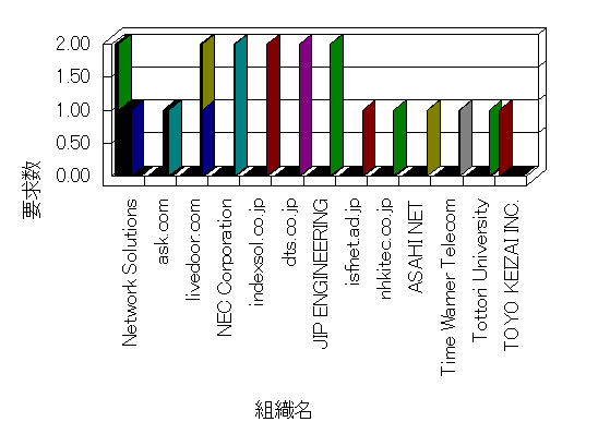 組織ユーザーにインターネット接続を提供する、商用または非営利団体、学術・行政機関などの、インターネット ドメイン で識別される団体や組織です。Microsoft Site Server Analysis は同じ組織に登録されたすべてのドメインを 1 つの組織としてグループ化します。ドメインがデータベースで使用できない場合は、1 つのインターネット ドメインが 1 つの組織を識別するのに使用されます。