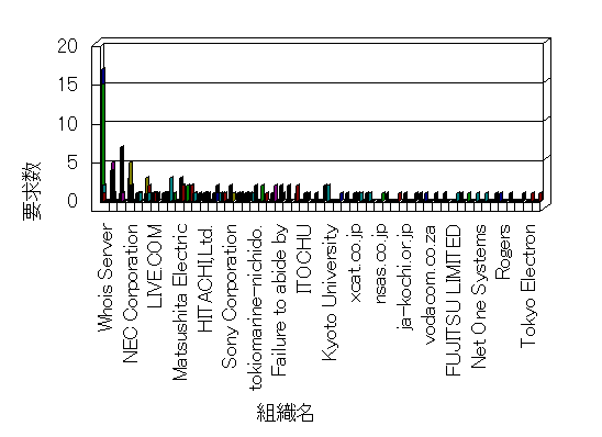 組織ユーザーにインターネット接続を提供する、商用または非営利団体、学術・行政機関などの、インターネット ドメイン で識別される団体や組織です。Microsoft Site Server Analysis は同じ組織に登録されたすべてのドメインを 1 つの組織としてグループ化します。ドメインがデータベースで使用できない場合は、1 つのインターネット ドメインが 1 つの組織を識別するのに使用されます。