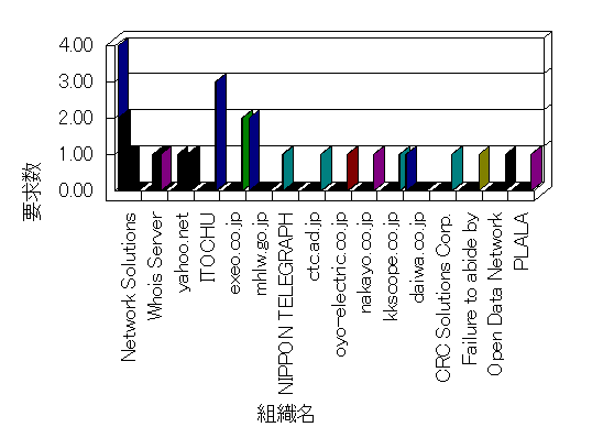組織ユーザーにインターネット接続を提供する、商用または非営利団体、学術・行政機関などの、インターネット ドメイン で識別される団体や組織です。Microsoft Site Server Analysis は同じ組織に登録されたすべてのドメインを 1 つの組織としてグループ化します。ドメインがデータベースで使用できない場合は、1 つのインターネット ドメインが 1 つの組織を識別するのに使用されます。