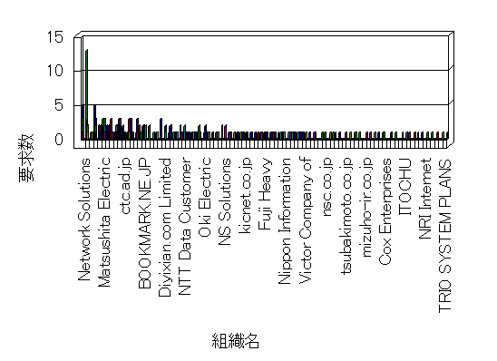 組織ユーザーにインターネット接続を提供する、商用または非営利団体、学術・行政機関などの、インターネット ドメイン で識別される団体や組織です。Microsoft Site Server Analysis は同じ組織に登録されたすべてのドメインを 1 つの組織としてグループ化します。ドメインがデータベースで使用できない場合は、1 つのインターネット ドメインが 1 つの組織を識別するのに使用されます。