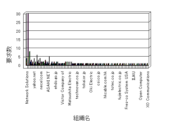 組織ユーザーにインターネット接続を提供する、商用または非営利団体、学術・行政機関などの、インターネット ドメイン で識別される団体や組織です。Microsoft Site Server Analysis は同じ組織に登録されたすべてのドメインを 1 つの組織としてグループ化します。ドメインがデータベースで使用できない場合は、1 つのインターネット ドメインが 1 つの組織を識別するのに使用されます。