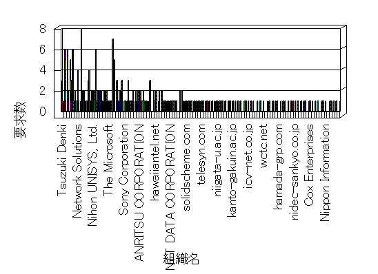 組織ユーザーにインターネット接続を提供する、商用または非営利団体、学術・行政機関などの、インターネット ドメイン で識別される団体や組織です。Microsoft Site Server Analysis は同じ組織に登録されたすべてのドメインを 1 つの組織としてグループ化します。ドメインがデータベースで使用できない場合は、1 つのインターネット ドメインが 1 つの組織を識別するのに使用されます。
