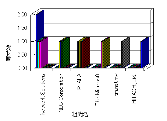 組織ユーザーにインターネット接続を提供する、商用または非営利団体、学術・行政機関などの、インターネット ドメイン で識別される団体や組織です。Microsoft Site Server Analysis は同じ組織に登録されたすべてのドメインを 1 つの組織としてグループ化します。ドメインがデータベースで使用できない場合は、1 つのインターネット ドメインが 1 つの組織を識別するのに使用されます。