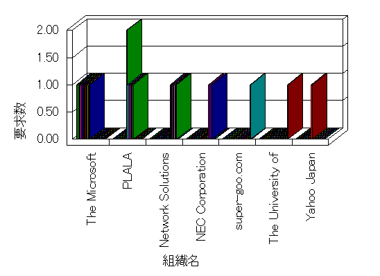 組織ユーザーにインターネット接続を提供する、商用または非営利団体、学術・行政機関などの、インターネット ドメイン で識別される団体や組織です。Microsoft Site Server Analysis は同じ組織に登録されたすべてのドメインを 1 つの組織としてグループ化します。ドメインがデータベースで使用できない場合は、1 つのインターネット ドメインが 1 つの組織を識別するのに使用されます。