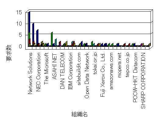 組織ユーザーにインターネット接続を提供する、商用または非営利団体、学術・行政機関などの、インターネット ドメイン で識別される団体や組織です。Microsoft Site Server Analysis は同じ組織に登録されたすべてのドメインを 1 つの組織としてグループ化します。ドメインがデータベースで使用できない場合は、1 つのインターネット ドメインが 1 つの組織を識別するのに使用されます。