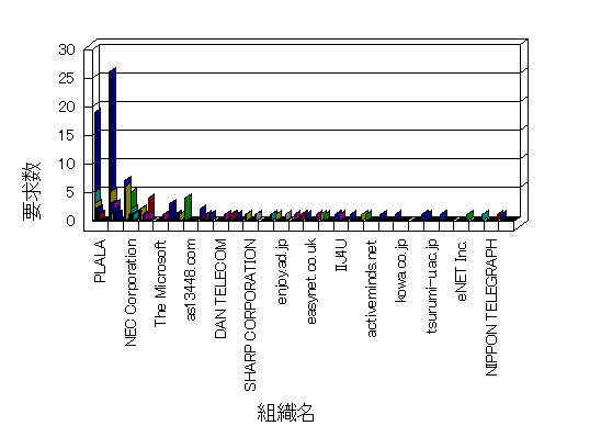 組織ユーザーにインターネット接続を提供する、商用または非営利団体、学術・行政機関などの、インターネット ドメイン で識別される団体や組織です。Microsoft Site Server Analysis は同じ組織に登録されたすべてのドメインを 1 つの組織としてグループ化します。ドメインがデータベースで使用できない場合は、1 つのインターネット ドメインが 1 つの組織を識別するのに使用されます。