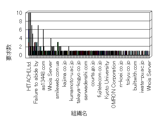 参照組織のサイトには、このサイトにリンクするページがあります。グラフでは、このサイトへのアクセス数に基づいた、上位 10 組織を示します。