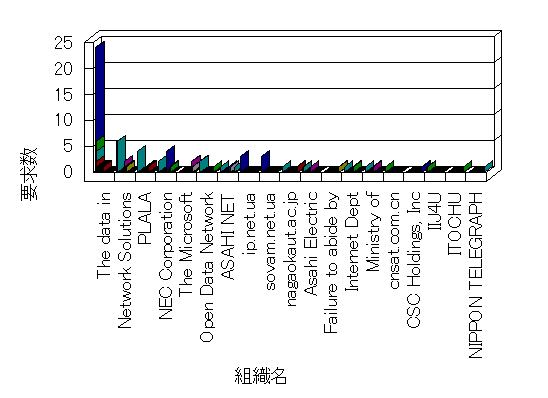組織ユーザーにインターネット接続を提供する、商用または非営利団体、学術・行政機関などの、インターネット ドメイン で識別される団体や組織です。Microsoft Site Server Analysis は同じ組織に登録されたすべてのドメインを 1 つの組織としてグループ化します。ドメインがデータベースで使用できない場合は、1 つのインターネット ドメインが 1 つの組織を識別するのに使用されます。