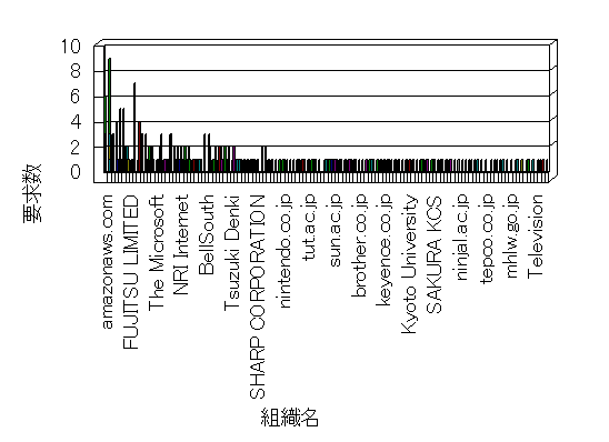 参照組織のサイトには、このサイトにリンクするページがあります。グラフでは、このサイトへのアクセス数に基づいた、上位 10 組織を示します。