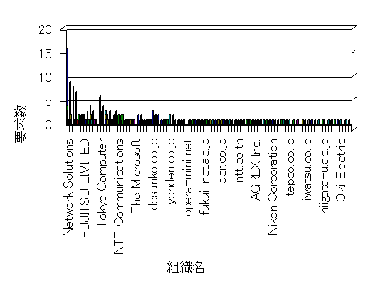 組織ユーザーにインターネット接続を提供する、商用または非営利団体、学術・行政機関などの、インターネット ドメイン で識別される団体や組織です。Microsoft Site Server Analysis は同じ組織に登録されたすべてのドメインを 1 つの組織としてグループ化します。ドメインがデータベースで使用できない場合は、1 つのインターネット ドメインが 1 つの組織を識別するのに使用されます。