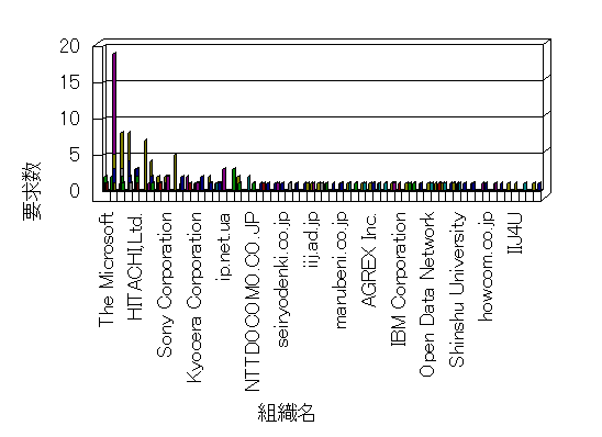 組織ユーザーにインターネット接続を提供する、商用または非営利団体、学術・行政機関などの、インターネット ドメイン で識別される団体や組織です。Microsoft Site Server Analysis は同じ組織に登録されたすべてのドメインを 1 つの組織としてグループ化します。ドメインがデータベースで使用できない場合は、1 つのインターネット ドメインが 1 つの組織を識別するのに使用されます。