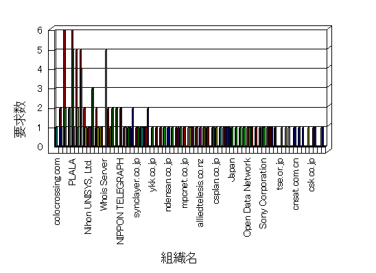 組織ユーザーにインターネット接続を提供する、商用または非営利団体、学術・行政機関などの、インターネット ドメイン で識別される団体や組織です。Microsoft Site Server Analysis は同じ組織に登録されたすべてのドメインを 1 つの組織としてグループ化します。ドメインがデータベースで使用できない場合は、1 つのインターネット ドメインが 1 つの組織を識別するのに使用されます。