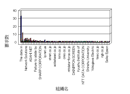 組織ユーザーにインターネット接続を提供する、商用または非営利団体、学術・行政機関などの、インターネット ドメイン で識別される団体や組織です。Microsoft Site Server Analysis は同じ組織に登録されたすべてのドメインを 1 つの組織としてグループ化します。ドメインがデータベースで使用できない場合は、1 つのインターネット ドメインが 1 つの組織を識別するのに使用されます。