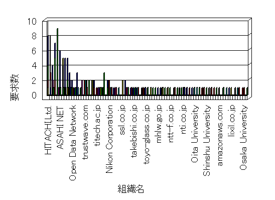 参照組織のサイトには、このサイトにリンクするページがあります。グラフでは、このサイトへのアクセス数に基づいた、上位 10 組織を示します。