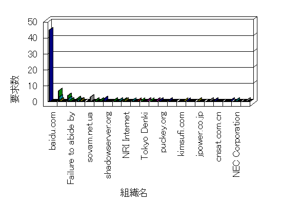 参照組織のサイトには、このサイトにリンクするページがあります。グラフでは、このサイトへのアクセス数に基づいた、上位 10 組織を示します。