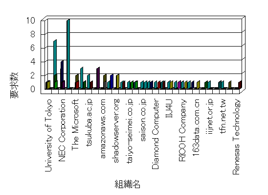 参照組織のサイトには、このサイトにリンクするページがあります。グラフでは、このサイトへのアクセス数に基づいた、上位 10 組織を示します。