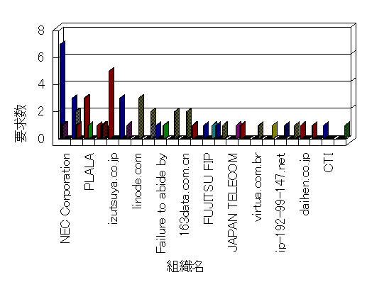 組織ユーザーにインターネット接続を提供する、商用または非営利団体、学術・行政機関などの、インターネット ドメイン で識別される団体や組織です。Microsoft Site Server Analysis は同じ組織に登録されたすべてのドメインを 1 つの組織としてグループ化します。ドメインがデータベースで使用できない場合は、1 つのインターネット ドメインが 1 つの組織を識別するのに使用されます。