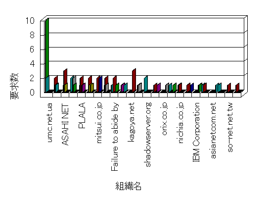 参照組織のサイトには、このサイトにリンクするページがあります。グラフでは、このサイトへのアクセス数に基づいた、上位 10 組織を示します。