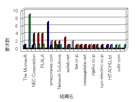 参照組織のサイトには、このサイトにリンクするページがあります。グラフでは、このサイトへのアクセス数に基づいた、上位 10 組織を示します。
