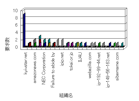 参照組織のサイトには、このサイトにリンクするページがあります。グラフでは、このサイトへのアクセス数に基づいた、上位 10 組織を示します。